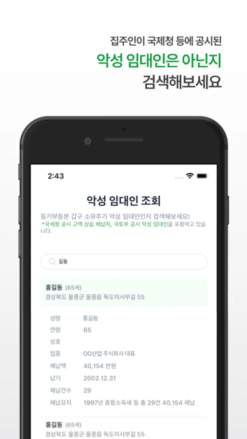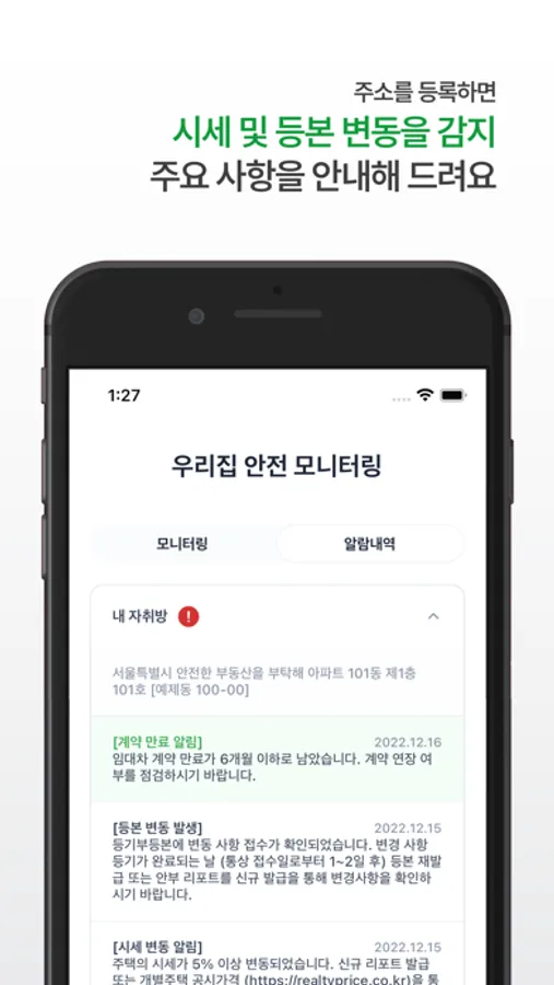 * 안전 모니터링 및 악성 임대인 검색 서비스를 통해 위험한 계약을 피하고 똑똑한 임차인이 되어보세요.
