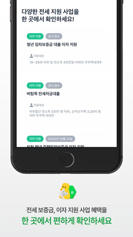 * 정부의 월전세 보증금 및 이자 지원 사업을 한 곳에서 확인할 수 있습니다.