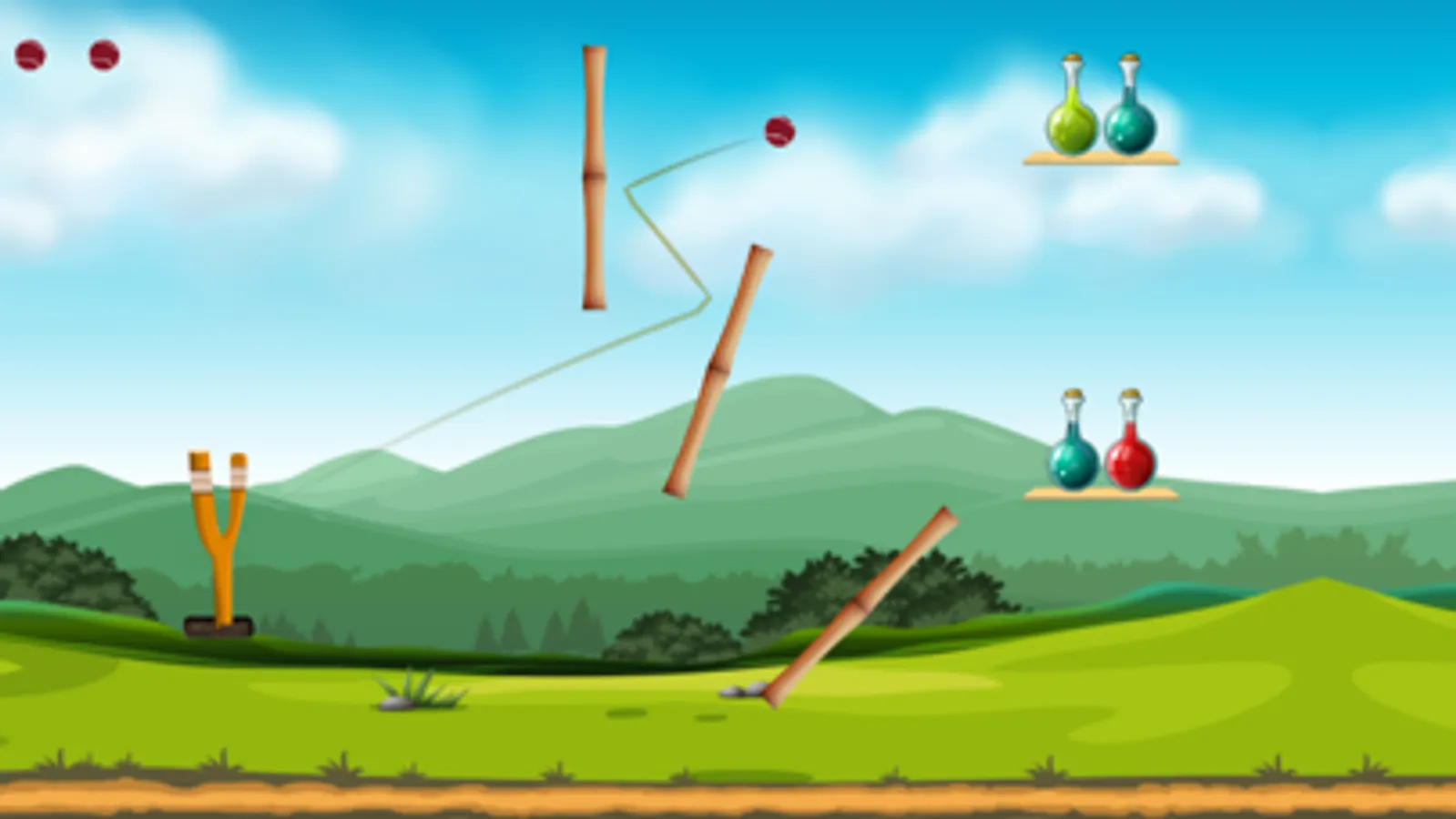 To enjoy endless fun of knock down smily type game with 100 challenging levels in this hit knock down bottles game. In front of you there is a catapult, sling or gulel to have fun by playing and breaking colorful bottles in this best aiming games, catapult games free and free 2d bottles games.