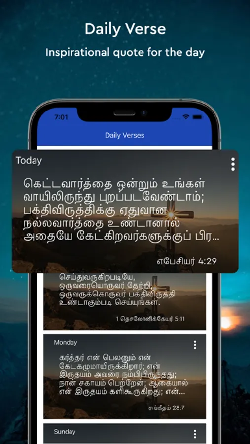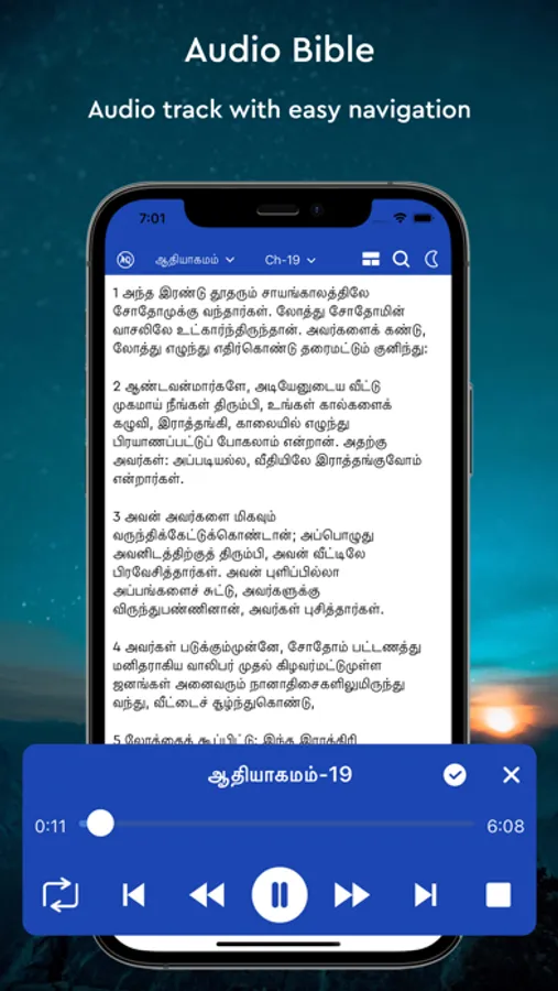 The Tamil Holy Bible iOS app is the perfect companion for anyone looking to read, study and listen to the Bible in the Tamil language. This app is designed to make it easy to access the Bible wherever you are, whether you're at home, at church, or on the go.