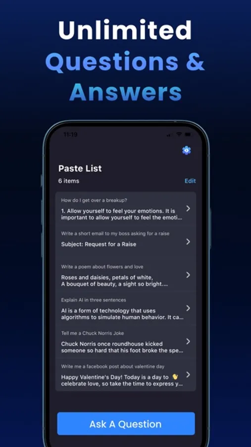 ## Ask Anything & Get Answers Effortlessly: If you're someone who frequently struggles with writing or finding the right words to say, the AutoPaste app is the perfect solution for you. The app has a wide range of features that make it an all-in-one writing assistant. This writing assistant helps you write anything from emails and social media posts to essays and creative writing pieces seamlessly. Using this AI writer app, you can write emails, chat responses, content, essay outline and more. You can also use it as your copywriter assistant to write ads, product descriptions, sales pages, sales pitches, website content, and call to action.