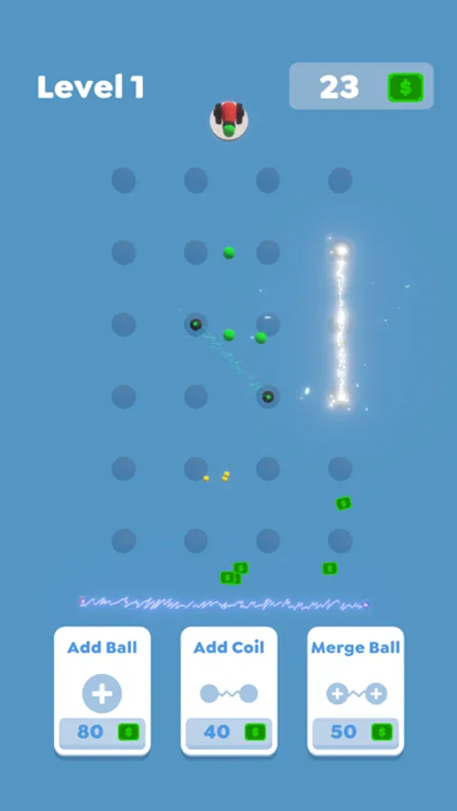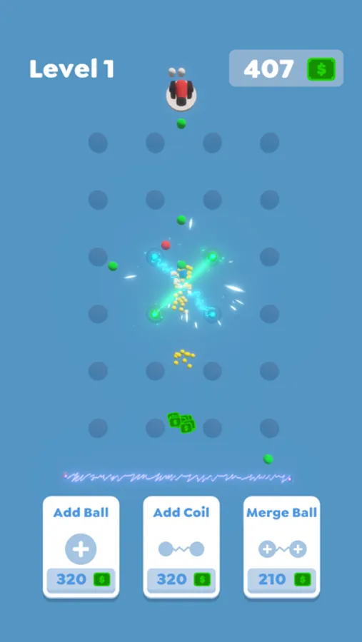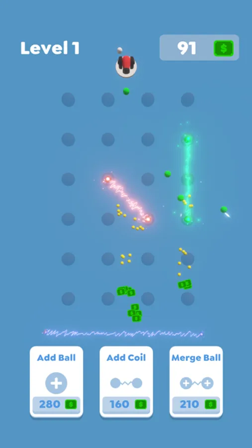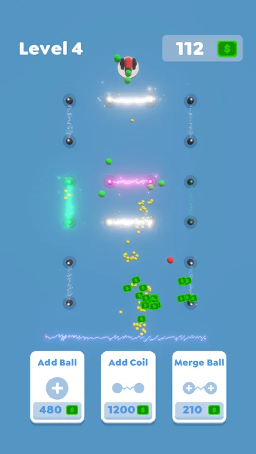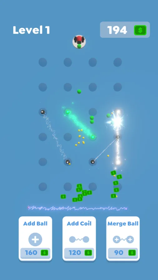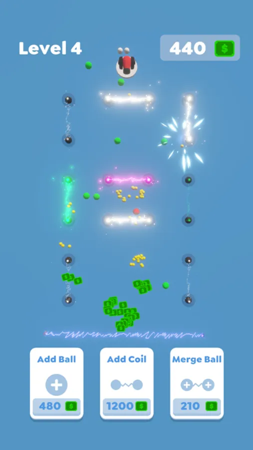 It's simple geometry ! Buy new coils, place them in right places and let's see how much money you can make ! Every time you electrocute the balls, it's more money you make !
