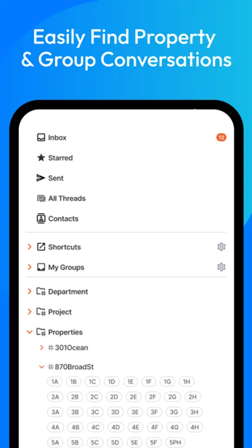 Groups power communication around properties, projects, and topics. They are easy to create and simple to use. Tags organize and label communications in a standardized way. When one team member tags a conversation with a property, unit, project, etc., it’s labeled for everyone.