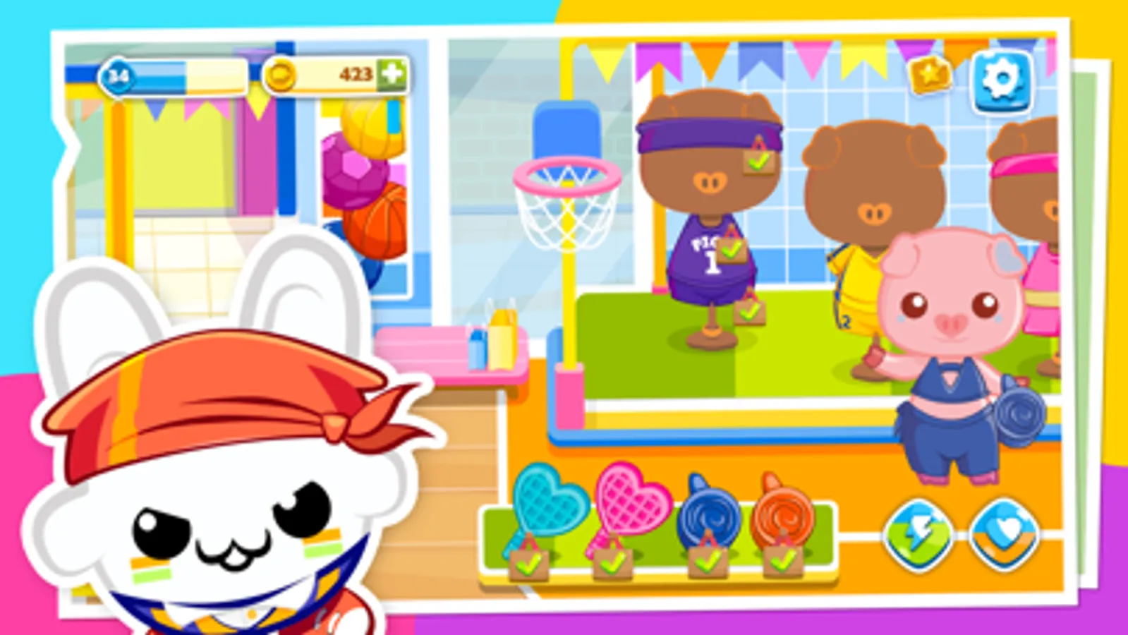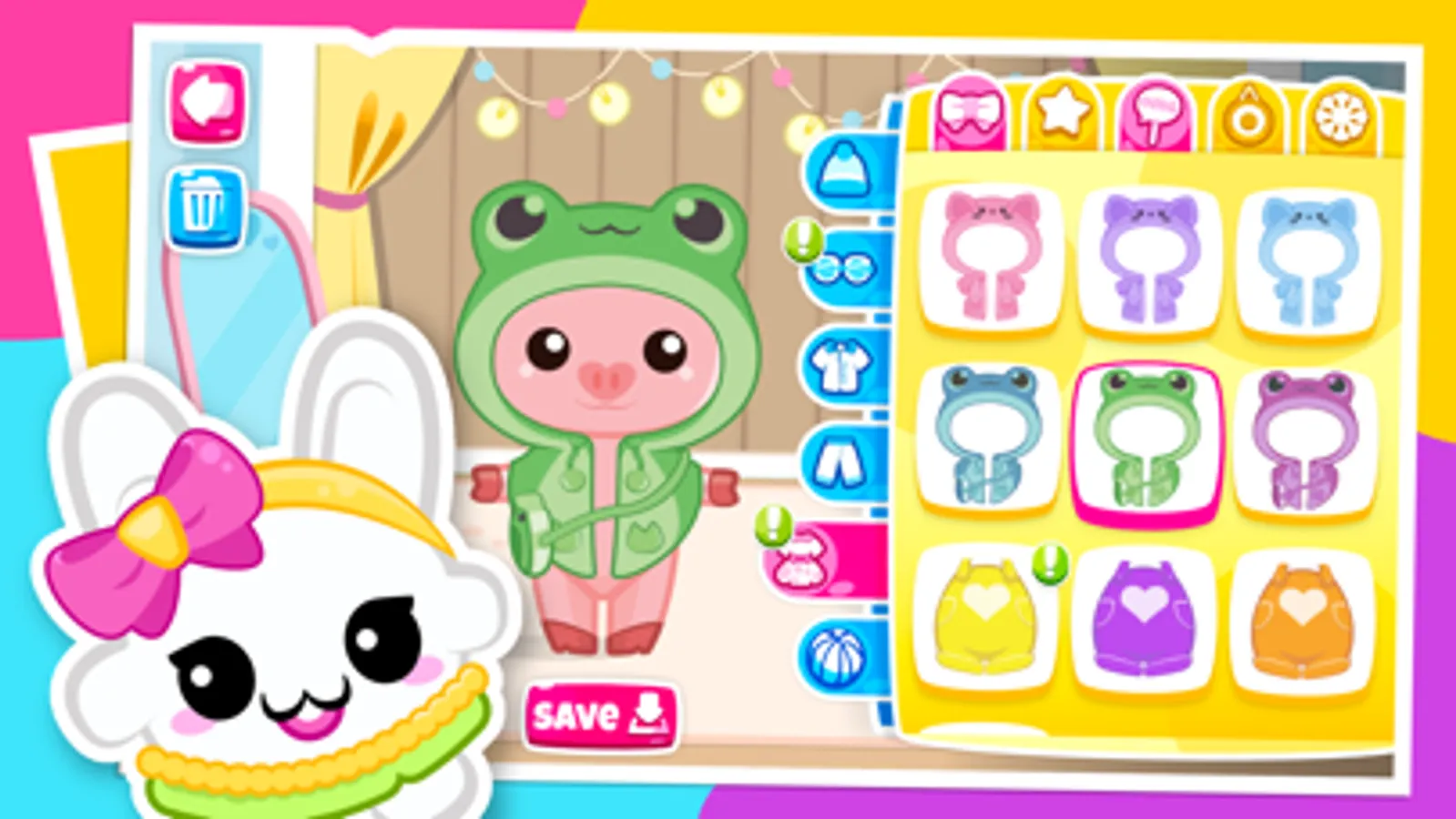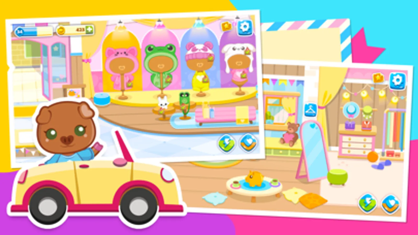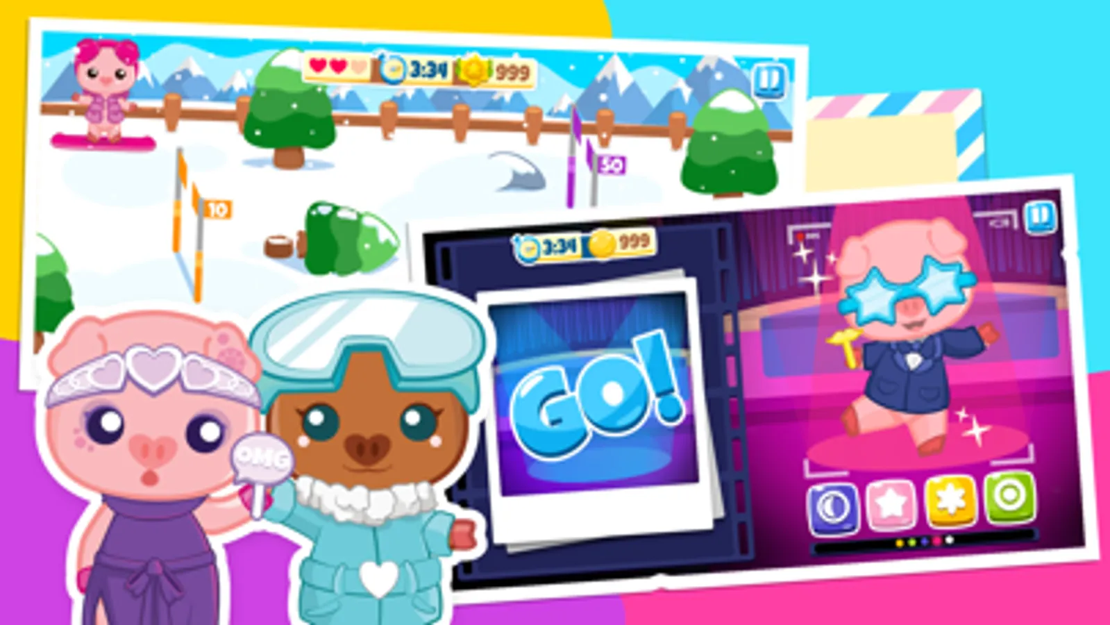Go to the supermarket and make the necessary purchases for your Piggy's care. You can also choose the color of her fur, eyes or nose.