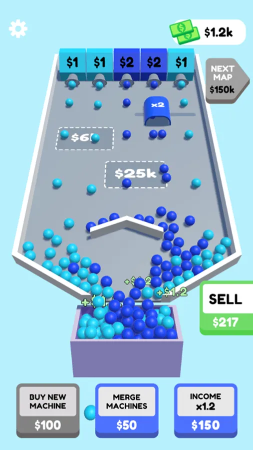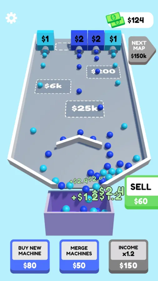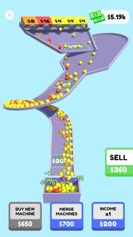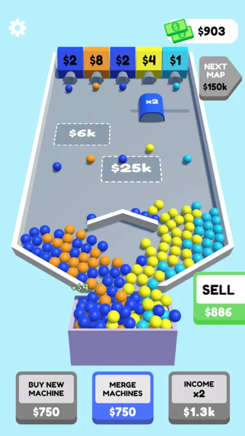 Produce colored balls, throw them into boxes and earn as much money as you can.