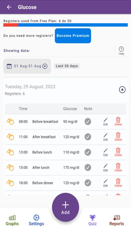 -Glycemia: In this section, the daily blood glucose values will be recorded and organized in relation to meals, this allows you to make dose adjustments of your usual medication or determine possible triggers in case of worsening of your blood glucose values. The data will be displayed in simple and intuitive graphs and can be exported in PDF format for better interpretation.