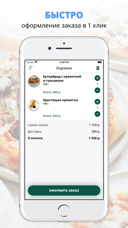 Скачивайте наше приложение, оформляйте заказ и наслаждайтесь любимой едой, где бы Вы ни были! Приятного аппетита!