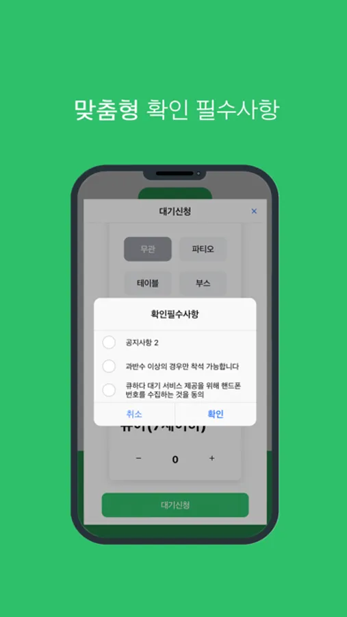 레스토랑/식당/전시/카페 등 줄서기가 필요한 곳에 적용 가능한 웨이팅 대기 서비스 큐하다