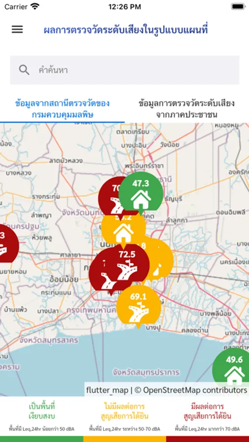 จัดทำเพื่อรายงานข้อมูลระดับเสียงบนอุปกรณ์สื่อสารแบบพกพา รวมไปถึงการรายงานข้อมูลระดับเสียงบนเว็บไซต์ เพื่อให้ประชาชนเข้าถึงข้อมูลได้ดียิ่งขึ้น ส่งเสริมการมีส่วนร่วมของเครือข่ายภาคประชาชน