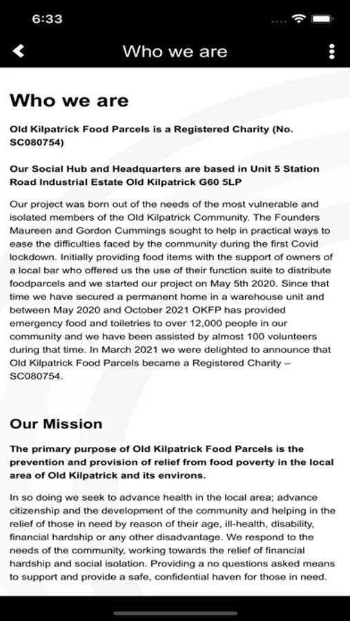 The primary purpose of Old Kilpatrick Food Parcels is the prevention and provision of relief from food poverty in the local area of Old Kilpatrick and its environs.