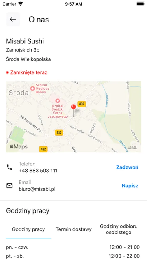 Oprócz zamawiania online aplikacja pozwala sprawdzić: