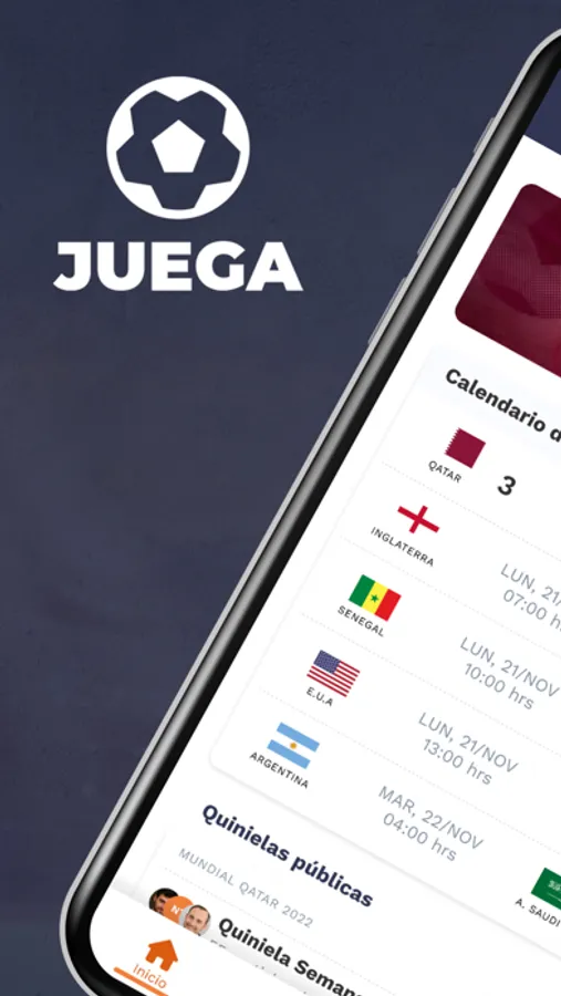 Con Juega puedes competir con tus amigos y otros fans prediciendo resultados de partidos de fútbol profesional. Demuestra tu conocimiento de este deporte; crea, comparte y administra juegos de predicción y quinielas.