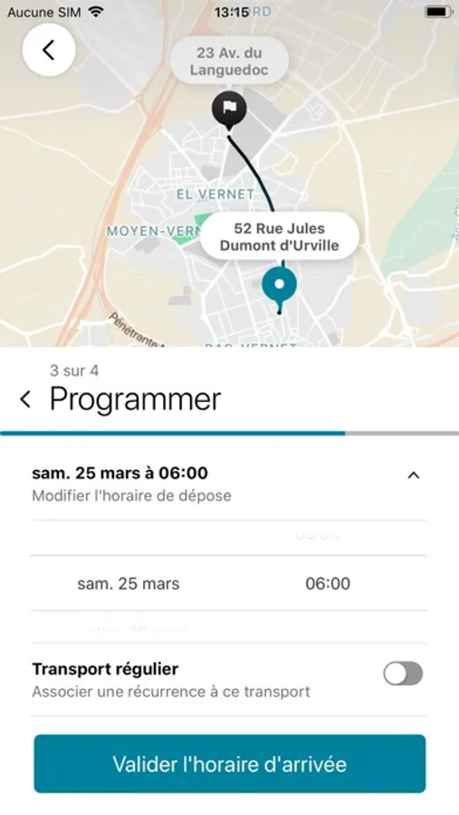 2- Je réserve un véhicule (si aucune ligne régulière ne me permet d’effectuer le trajet à +/- 30 min de l‘horaire souhaité)