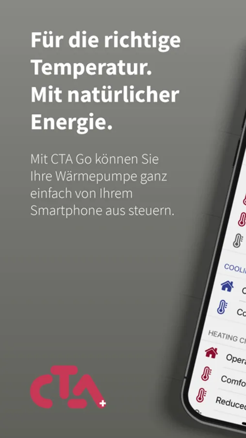 Mit CTA Go können Sie Ihre Wärmepumpe ganz einfach von Ihrem Smartphone aus steuern.