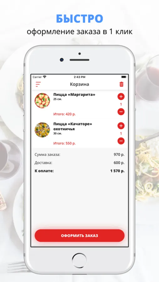 Скачивайте наше приложение, оформляйте заказ и наслаждайтесь любимой едой, где бы Вы ни были! Приятного аппетита!
