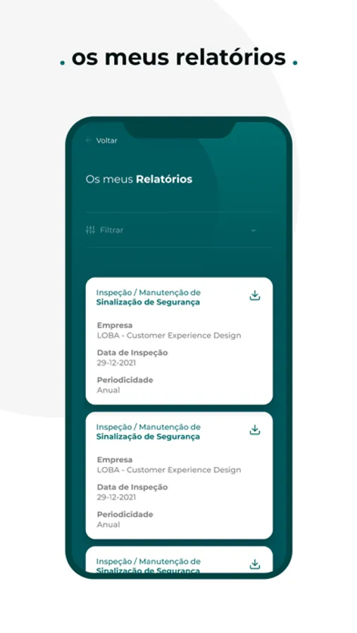 Aplicação mobile para a criação de relatórios de manutenção padronizados de acordo com normativos, para utilização de responsáveis pela manutenção de quatro tipos de equipamentos de segurança.