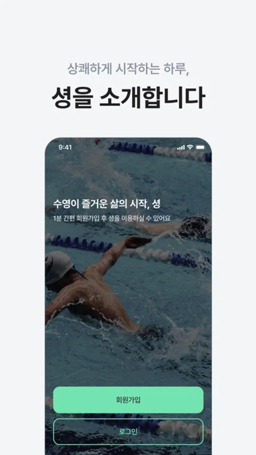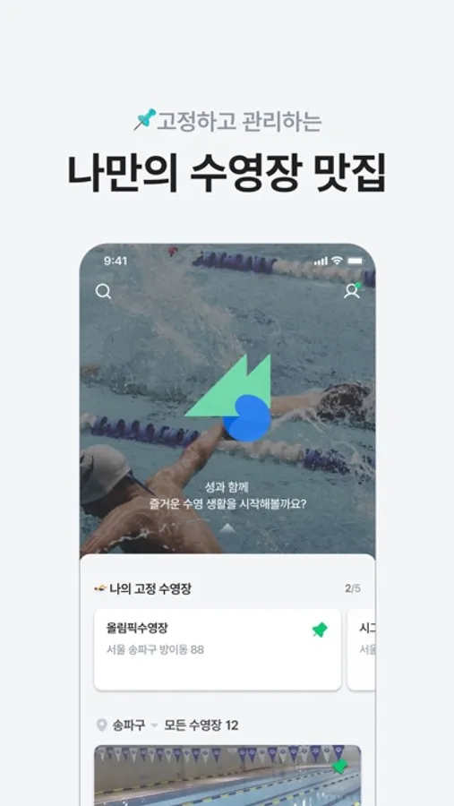 셩앱은 수영장 정보, 자유수영 및 강습 정보를 상세하게 확인하고, 수영 기록을 아카이빙하여 더 즐겁고 유쾌한 수영 운동이 될 수 있도록 도와드려요.