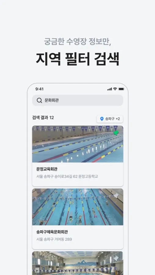 동네 수영장을 찾는다면? 셩앱에서는 수영 운동이 가능한 수영장 정보를 볼 수 있어요. 지역 필터링으로 집 주변, 회사 근처, 학교 주변에 다닐만한 수영장이 있는지 찾아보세요!