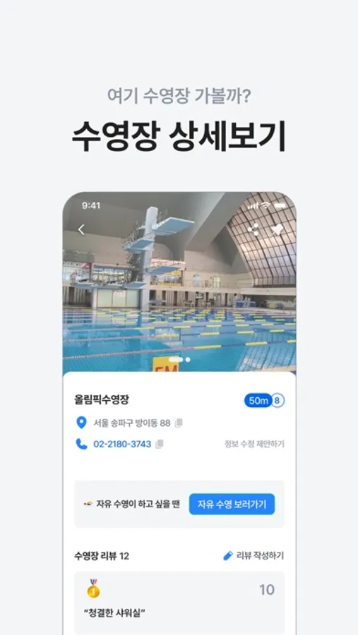 자유 수영 시간표랑 가격이 궁금하다면? 수영 강습 정보가 궁금하다면? 셩앱 셩장 상세보기에서 빠르고 쉽게 확인해보세요!
