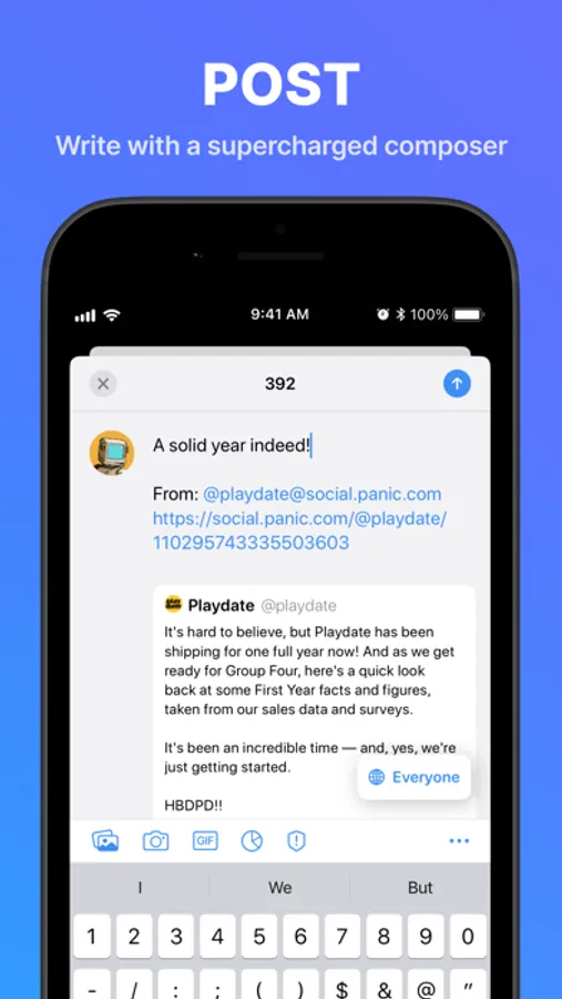 - Intuitive gestures (long-press posts and tab bar items, pinch the screen to change themes, scrub videos, and more)