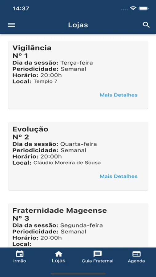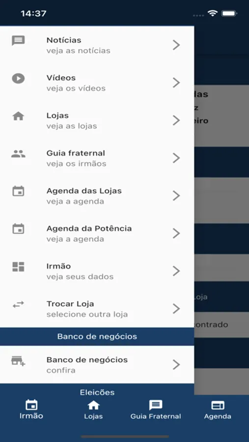 É possível também pesquisar calendários, marcar e retirar presenças de irmãos nos eventos e também disponível a visualização da Identidade Maçônica.