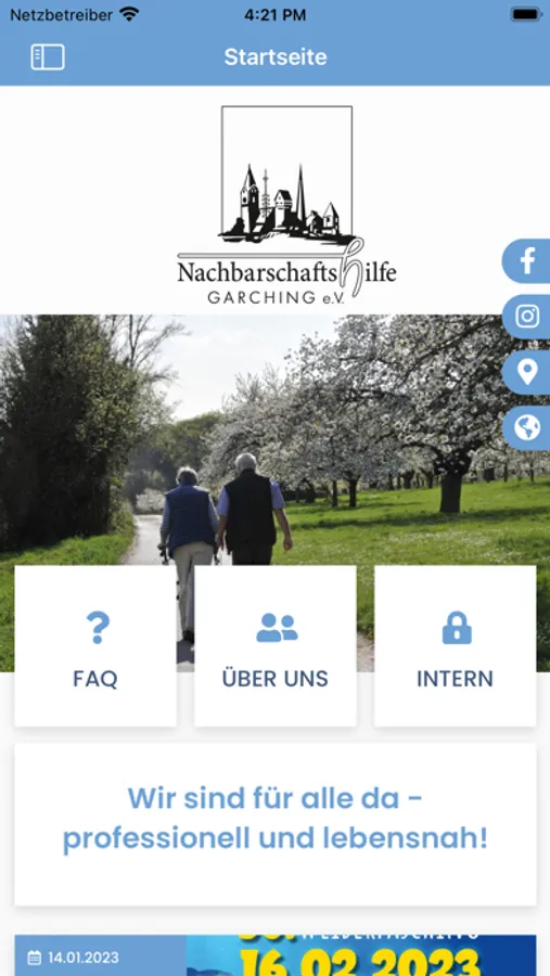 Aktuelle News und Termine rund um die Nachbarschaftshilfe Garching, unsere Angebote, Projekte, Veranstaltungen und natürlich unser buntes Vereinsleben - einfach direkt auf Dein Handy.