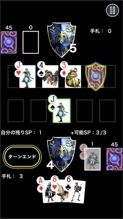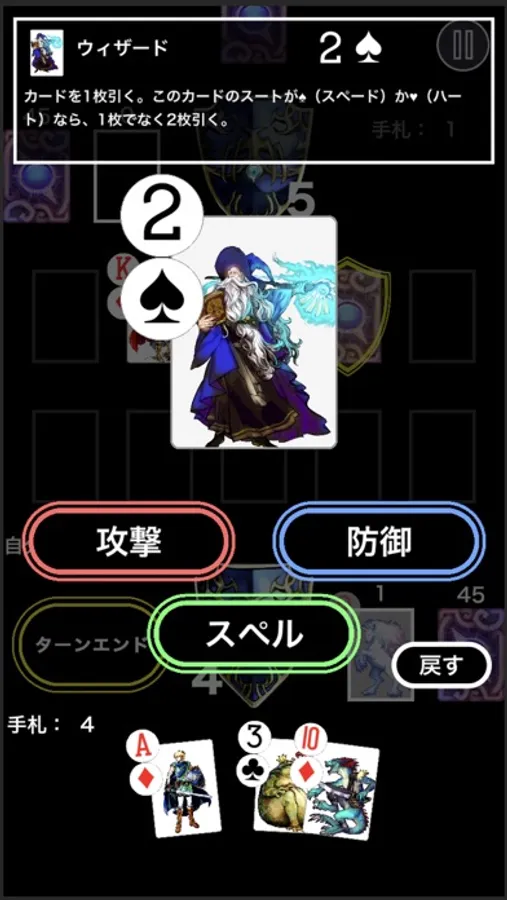 カードの数字を使って相手のカードと戦闘を行ったり、カードが個々に持っているスペル効果(特殊効果)を使用して対戦を進めていきます。