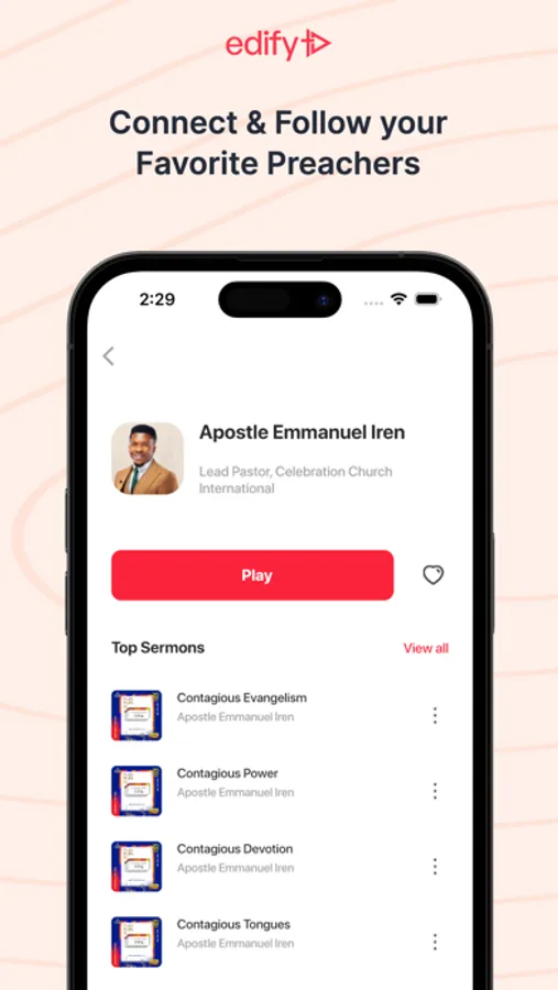 Download Edify today and start streaming powerful, uplifting sermons that will inspire you to live your best life in Christ.