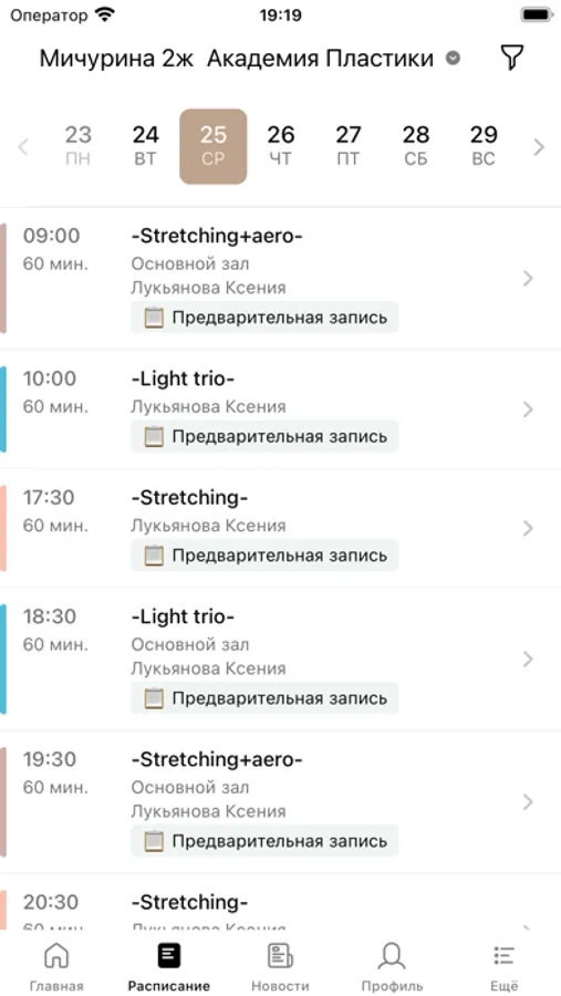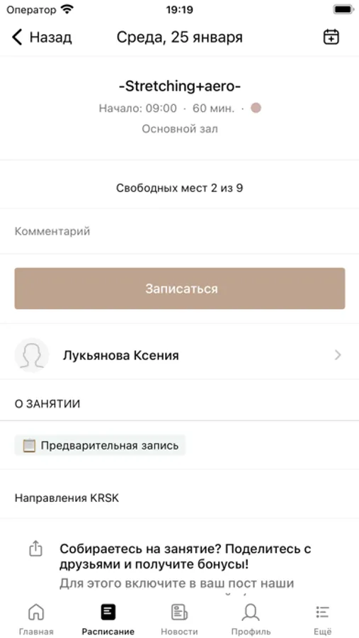 Приложение для клиентов клуба, для просмотра занятий и записи на тренировку