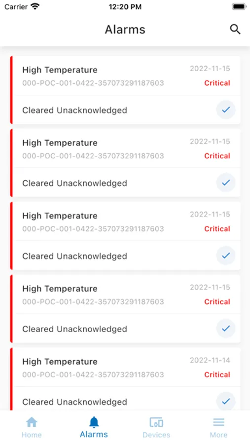 * Examinar alarmas y abrir paneles específicos de alarmas.