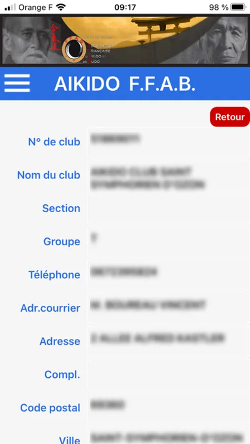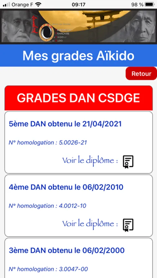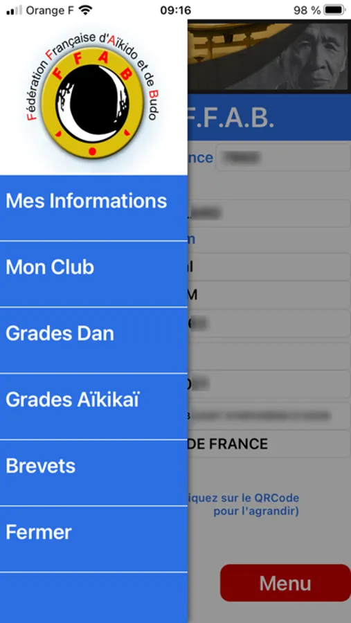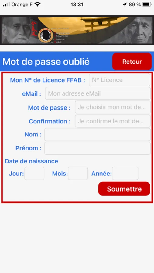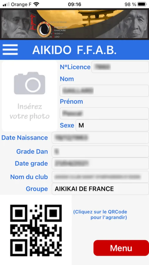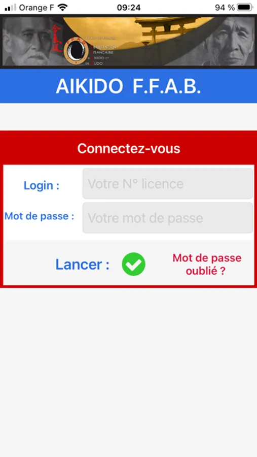 Application sécurisée pour accéder à l'historique du pratiquant et aux informations de la Fédération Française d'Aïkido.