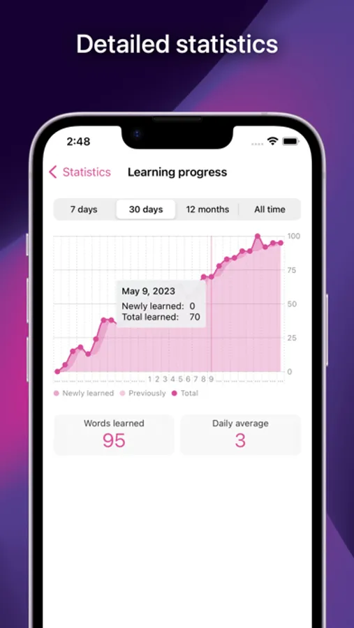 • Words get automatically sorted in learning levels.