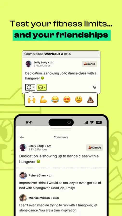 Each time your friends complete a workout, you’ll be notified. We do this to keep you accountable, but more importantly, to remind you to work out so you don’t have to face your