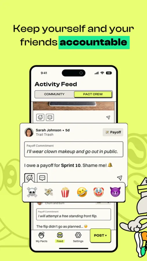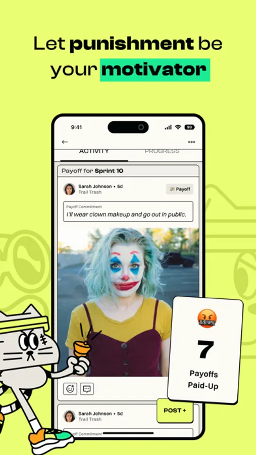 We’ll automatically create a group feed for you and your friends to laugh at (or encourage) each other. You’ll also get to keep track of everyone’s “punishments.”