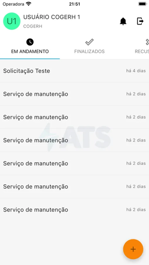 Cogerh company management application. It consists of an application focused on streamlining maintenance processes that may arise in everyday life. An administrator user is responsible for registering new users in the application, as well as for managing these users and assigning services to each one. A user of type Cogerh is responsible for requesting a new service. Finally, a user of the collaborator type is responsible for performing the services that are available and marking them as finished.