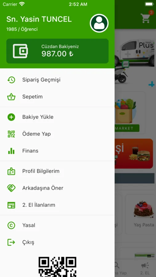 Ayrıca QR kodu ile ödeme seçeneği de mevcuttur.