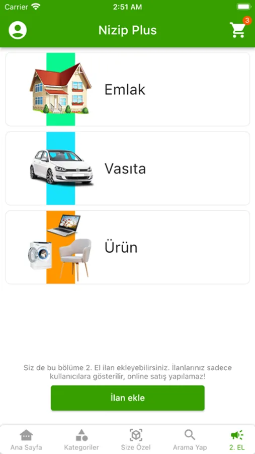 Farklı kategorilerde yüzlerce ürünü kullanıcılara sunan uygulama, ikinci el ürün ilanlarıına da yer vermektedir.