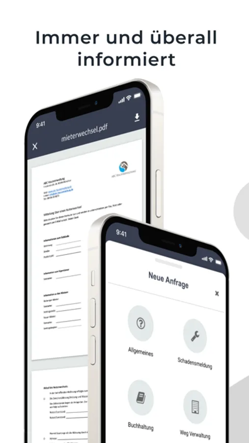 • Abwicklung von (Schadens-)Meldungen, Schlüsselbestellungen etc. direkt via Smartphone inkl. aktueller Bearbeitungsstatus