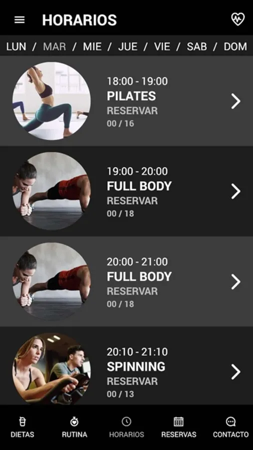 Nuestra APP cuenta con un novedoso sistema de reserva de clases integrado desde el que podrás reservar plaza en tu actividad favorita, con solo pulsar un botón sabrás si hay plaza disponible o entras en lista de espera. Olvídate de tener que llamar por teléfono, de apuntarte en listas, de coger tarjetas, de hacer colas en la puerta de la sala... queremos dejar atrás todo eso y este es el momento.