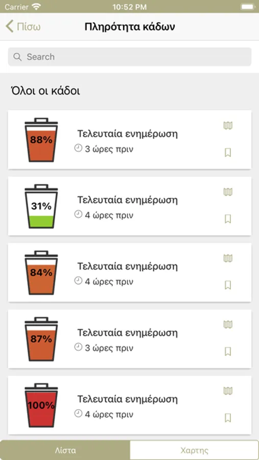 1. Πληρότητα κάδων που αφορούν το Δήμο Αλεξάνδρειας.