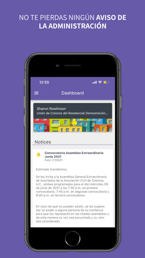 La aplicación móvil de AdKondo te permite consultar los movimientos de tu propiedad y condominio de manera sencilla y clara, así como reservar áreas comunes (amenidades), enterarte de manera oportuna de avisos publicados por la administración, conocer el directorio de tu condominio, listado de proveedores y más.