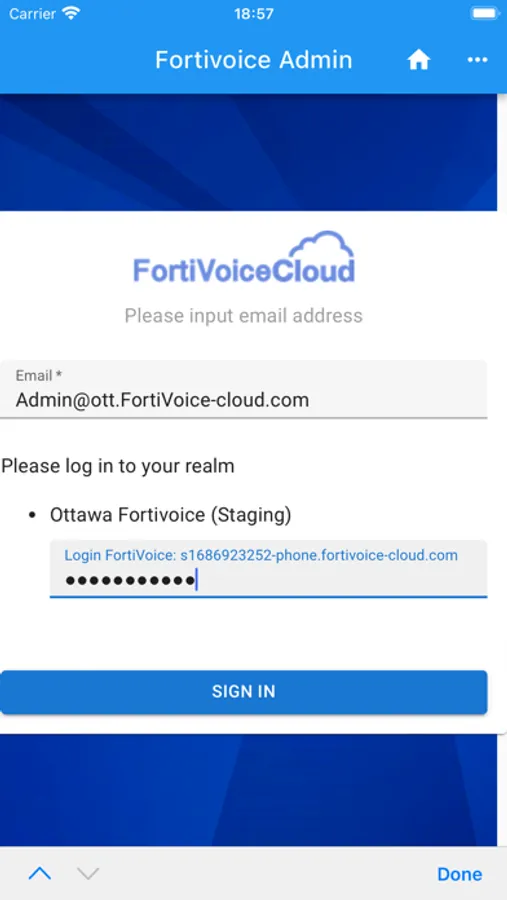 The FortiVoice Admin app allows you to monitor your FortiVoice Cloud and phone system status and easily manage phones and extensions from your mobile device. The app complements the FortiVoice Cloud admin portal by supporting you with some administrative tasks while you are away from your desk.
