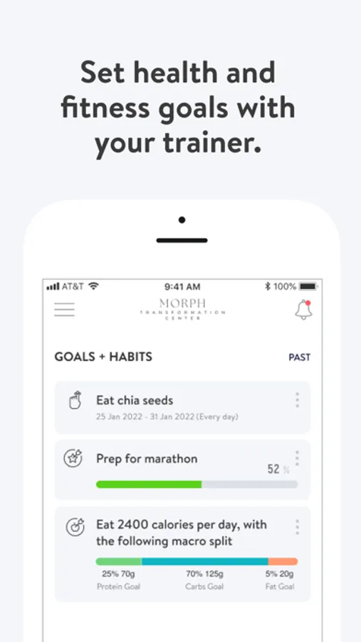 With the Morph Transformation Center App, you can start tracking your workouts and meals, measuring results, and achieving your fitness goals, all with the help of your personal trainer.