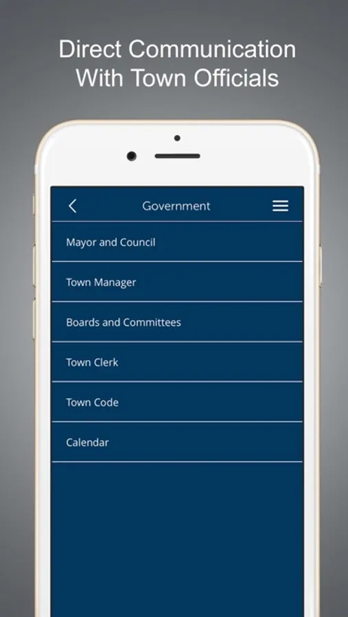 Government, Residents, and Departments sections allow you to have all the important contact and destination information in your town with the click of a button. Learn about your town’s history, demographics and elected officials. Find parks, facilities and points-of-interest along with information, phone numbers, maps and directions.