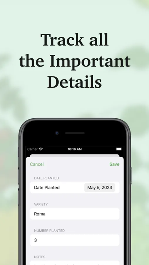 Our garden journal feature allows you to document your gardening journey. Take notes on your progress, track weather conditions and keep track of your harvest for review next year.