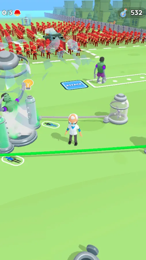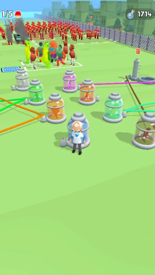 Each tube contains the DNA of a different mutant. Awaken mutants using DNA you collected from soldiers. Connect color tubes to machines to create mutants. Open the closed color tubes for more crazy experiments. Create stronger mutants by combining different color tubes! The army found out that you were conducting secret experiments and knocked on your door. What will you do now? Fortunately, you can create very powerful mutants. Don't let the number of soldiers scare you. Increase the number of slots to create more mutants. Don't let them get in your way. Let's smash them all!