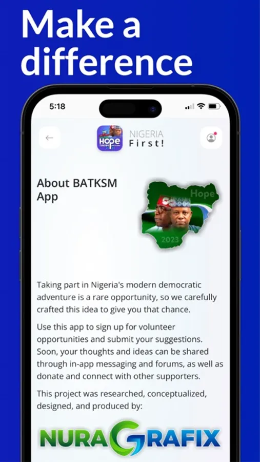 We are excited to launch this app and hope you find it useful in staying informed and engaged with 2023 general elections in Nigeria. We will continue to work on improving and adding new features to the app. As always, if you have any feedback or encounter any issues, please reach out to our support team through the app or through the email provided on the support page https://batksm.com/support