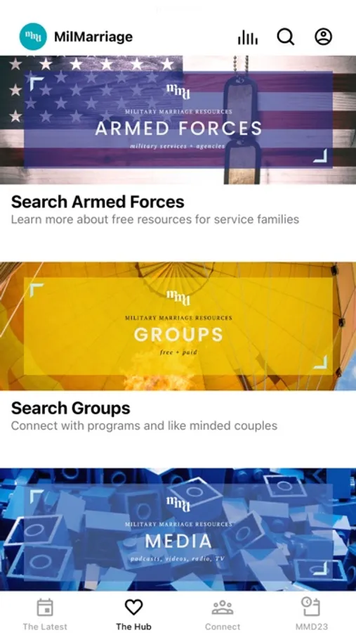 Developed for active, retired, guard and reserve United States Armed Forces members, the MMD app makes it easy for you to stay informed with our annual event and vetted service providers. Users are empowers to swipe through proactive, educational and crisis resolution resources to find what they need when they need it.
