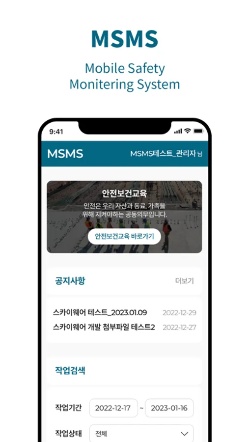 로그인 시 IOMS와 동일 계정으로 접속이 가능하며 안전보건교육 동영상 시청, IOMS 공지사항 확인을 할 수 있습니다..