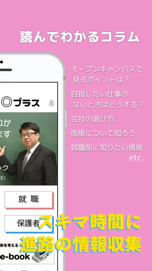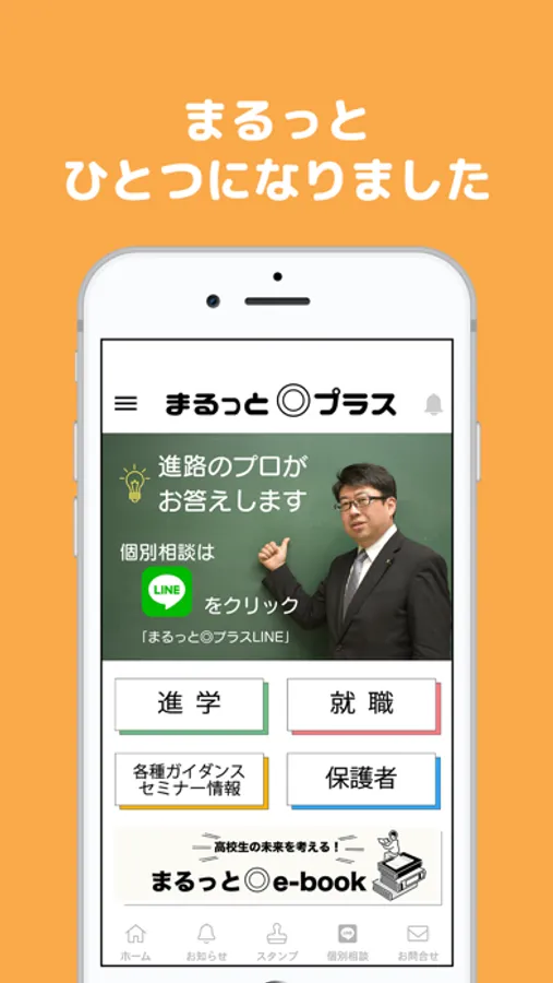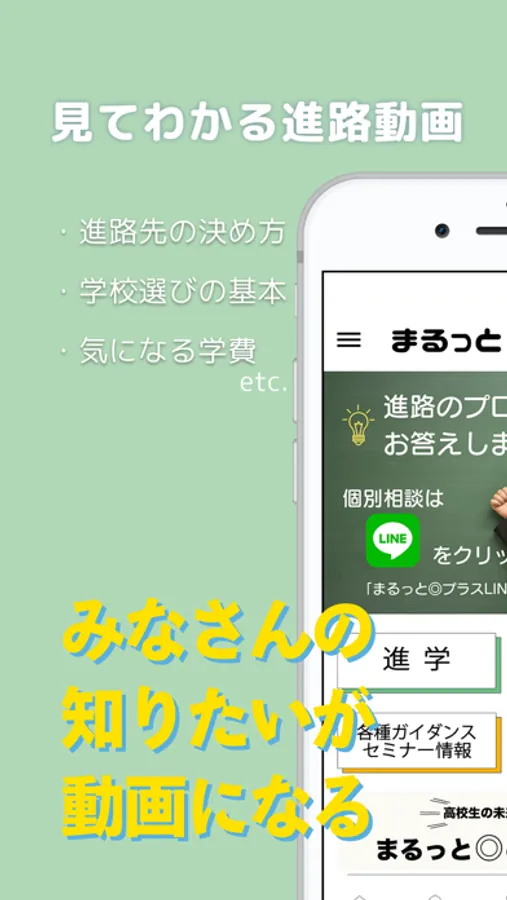 【まるっと◎プラス】アプリでは、進路を考える高校生、さらにそこに関わる全ての人が元気になる情報を配信します。